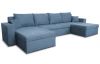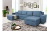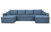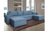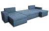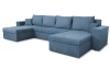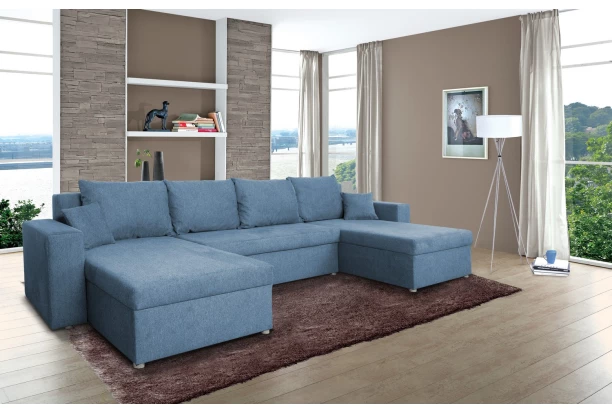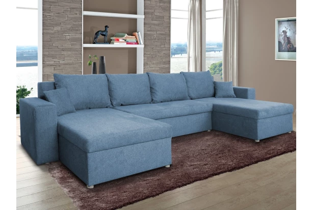 Sedací souprava ve tvaru U je oblíbená pro svou praktičnost, prostornost a příznivou cenu. Nabízí měkké opěrné polštáře, úložný prostor i funkci rozkladu na lůžko. Očalouněna tkaninou v barvě jeansově modrá.