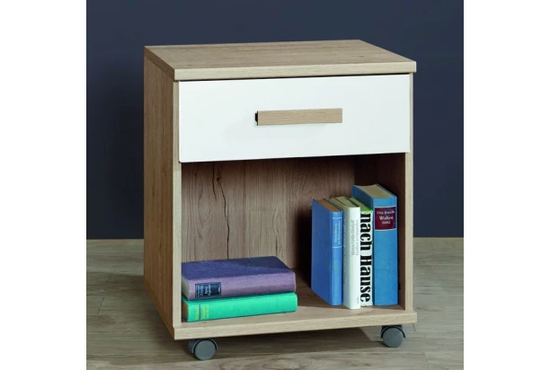 Úložný kontejner na kolečkách z programu Cariba v kombinaci dekoru dub san remo/bílý. Vhodný pro vybavení jakékoliv pracovny i dětského pokoje.