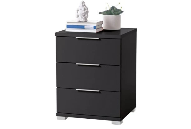 Moderní noční stolek s komfortně vyšší konstrukcí se ideálně hodí k vyššímu lůžku. Vyroben v černém provedení.