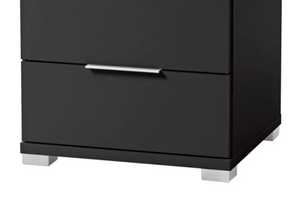 Moderní noční stolek s komfortně vyšší konstrukcí se ideálně hodí k vyššímu lůžku. Vyroben v černém provedení.