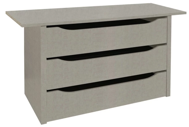 Vnitřní 3-zásuvkový element o šířce 111 cm pro umístění do vnitřního prostoru šatní skříně. Pro umístění do vnitřního skříňového bloku o šířce cca 112,5 cm. Praktický doplněk pro přehledné ukládání drobného prádla uvnitř skříně.