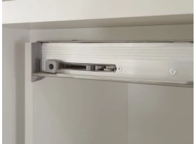 - zavěšení dveří v horní části na kovových závěsech na kovovou profilovou kolejnici, pojízdné díky kolečkám s kvalitní kovovou konstrukcí