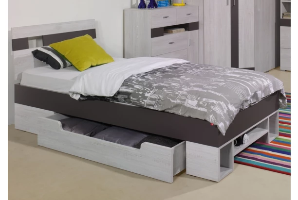 Program Tex v dekoru bělené borovice je vhodný pro vybavení jakéhokoliv pokoje: pro děti, mladistvé i dospělé. Postel s úložnou zásuvkou.