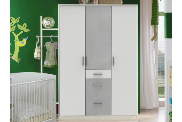 Šatní skříň o šířce 135 cm z programu Joker – univerzální, moderní a hlavně praktický nábytek pro zařízení pokoje pro děti, teenagery i dospělé. V kombinaci bílá/imitace šedý beton.