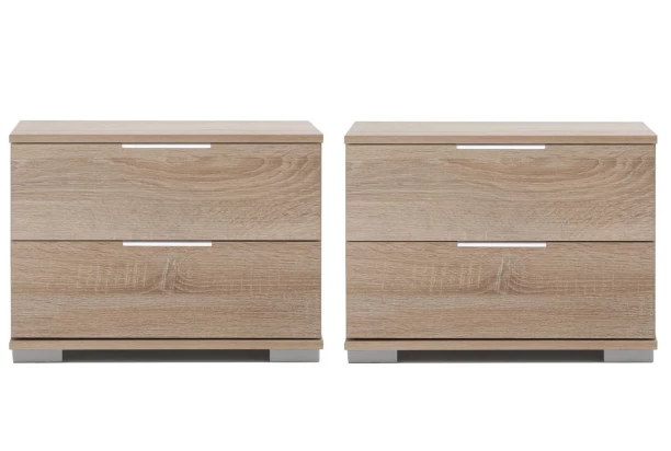 Set 2 kusů nočních stolků z programu Easy Plus – praktický nábytek pro moderní zařízení nejen ložnice a šatny. V provedení dub sonoma, varianta stolku se 2 zásuvkami.