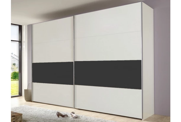 Šatní skříň o celkové šířce 270 cm se svým univerzálním stylem hodí do jakékoliv ložnice, chodby nebo šatny. Vyrobena v kombinaci bílá/antracitová šedá a díky 2 posuvným dveřím jsou vnitřní úložné prostory snadno přístupné. Uvnitř skříně najdete police a šatní tyče – vnitřní prostory můžete navíc libovolně doplnit dalšími policemi nebo příslušenstvím.