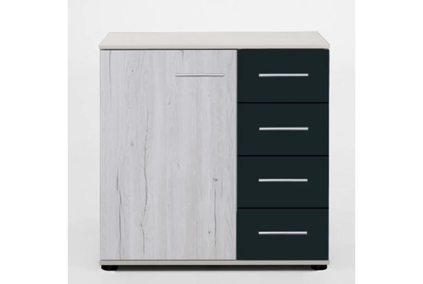 Praktická komoda v kombinaci běleného dubu a grafitové barvy vytváří moderní a zároveň příjemně působící kontrast.