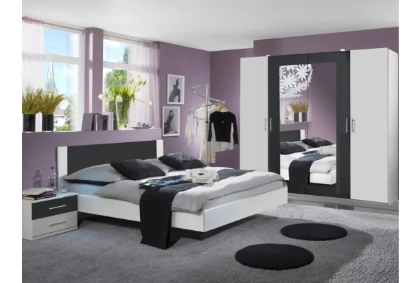 Sestava kompletní ložnice v kombinaci grafitově šedé a bílé barvy vytváří moderní a příjemně působící kontrast. S postelí o velikosti lůžka 160×200 cm.