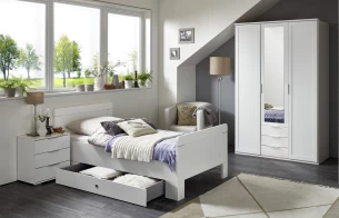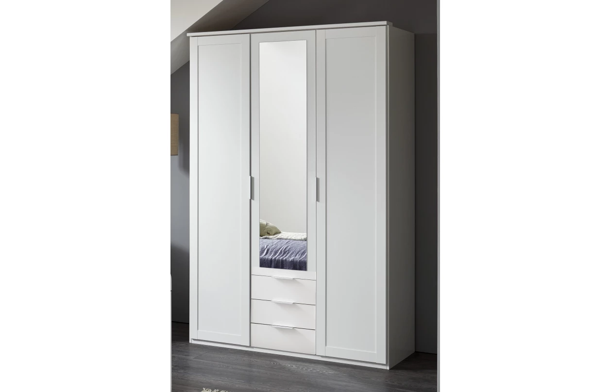 Šatní skříň o šířce 135 cm z programu Nadja je vhodná pro vybavení jakékoliv ložnice nebo pokoje – univerzální elegantní nábytek osloví mladou i starší generaci. Vyrobena v bílém dekoru.