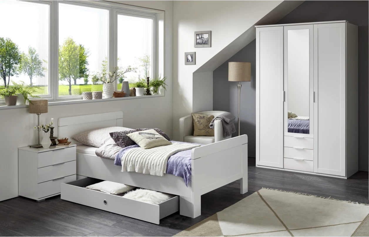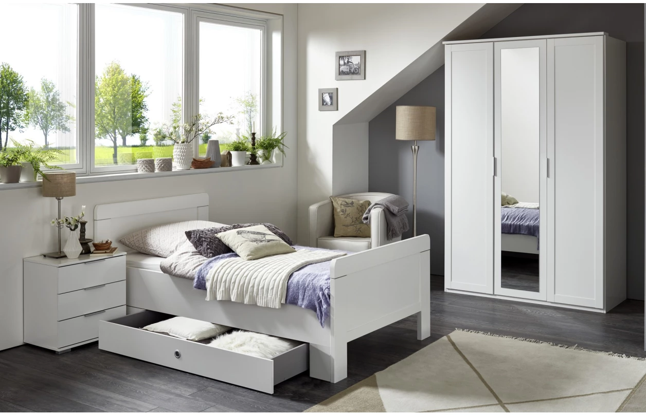 Vysoký noční stolek se 3 zásuvkami z programu Nadja je vhodná pro vybavení jakékoliv ložnice nebo pokoje – univerzální elegantní nábytek osloví mladou i starší generaci. Vyroben v bílém dekoru.