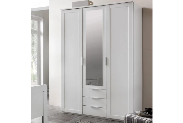 Šatní skříň o šířce 135 cm z programu Nadja je vhodná pro vybavení jakékoliv ložnice nebo pokoje – univerzální elegantní nábytek osloví mladou i starší generaci. Vyrobena v bílém dekoru a doplněna zrcadlem.