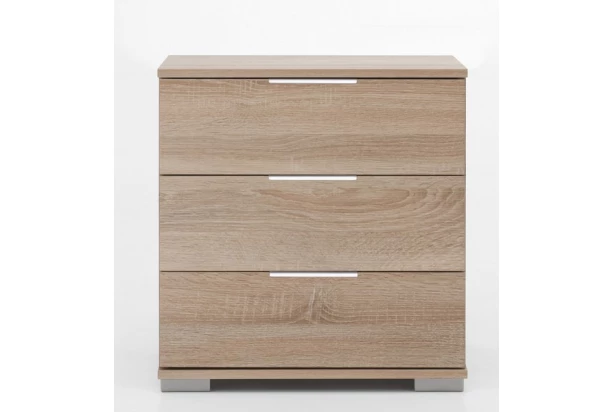 Vysoký noční stolek se 3 zásuvkami z programu Nadja je vhodná pro vybavení jakékoliv ložnice nebo pokoje – univerzální elegantní nábytek osloví mladou i starší generaci. Vyroben v dekoru dub sonoma.
