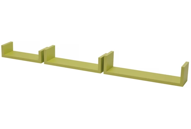 Praktická sada 3 kusů police o různých velikostech v barvě zelená. Police mohou být rozmístěny samostatně anebo tvořit společnou kompozici na jedné stěně. Hodí se do jakékoliv místnosti bytu.
