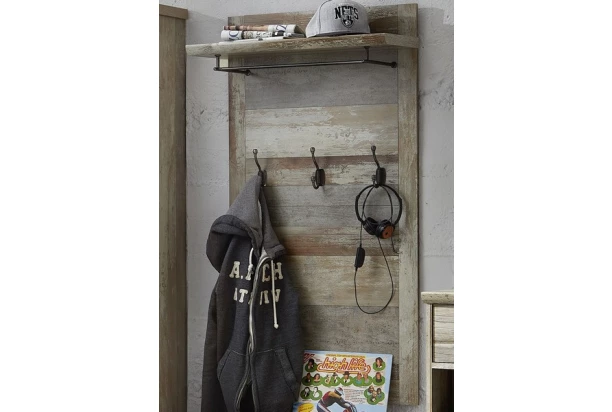 Nástěnný věšákový panel ze stylové kolekce Bonanza – povrchy imitující vintage optiku oprýskaných dřevěných latí vnesou do vašeho interieru originalitu a zároveň inspiraci k zařízení opravdu stylového bytu.