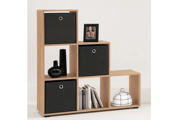 Regál se 6 přihrádkami může být umístěn ke stěně nebo volně v prostoru. Vyroben v dekoru dub Sonoma.