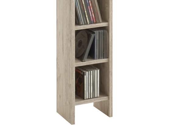 Vysoký regál v dekoru pískový dub má univerzální využití. Deset vnitřních polic pro ukládání knížek, cédéček nebo drobností.