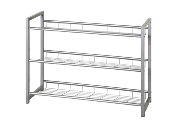 Univerzální šedý regál na boty (botník) je vyroben z kovu a univerzálně se hodí do jakékoliv předsíně nebo chodby.