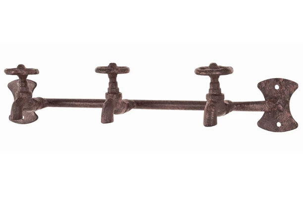 Vtipný nástěnný věšák z kovu imituje staré vodovodní kohoutky – zaujme na pohled a bude originálním a praktickým prvkem v mladistvě zařízeném interieru. Využití nejen v předsíni.
