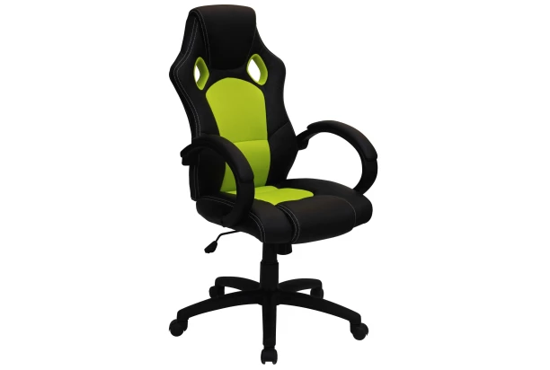 Atraktivní designové křeslo do pracovny připomíná pohodlnou sedačku závodního vozu. V černo-zeleném provedení.