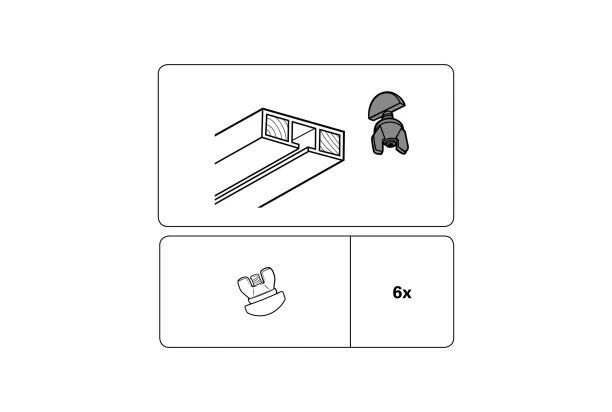 - doraz se pouze jednoduše nasune do záclonové kolejničky, pootočí o 90° a dotáhne