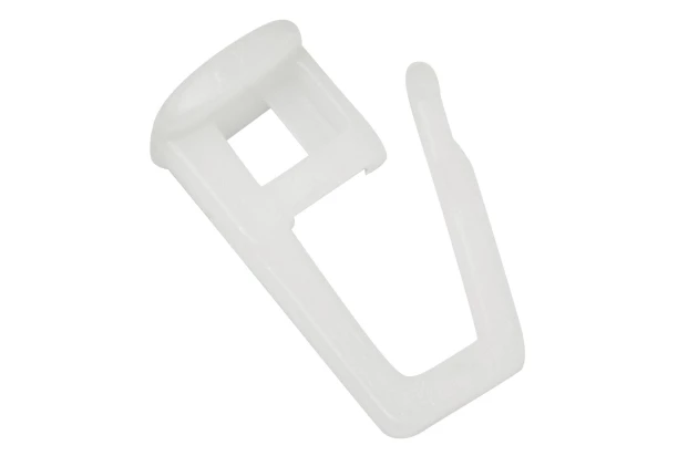 Háček na závěs ke kolejničce (30 ks) v plastovém provedení a bílé barvě.