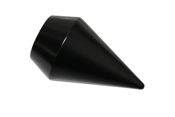 Kovová koncovka na garnýž ve tvaru komolého kužele v černém provedení.