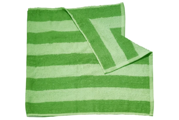 Osuška do koupelny o rozměru 70×140 cm s elegantním vzorem zelených proužků.