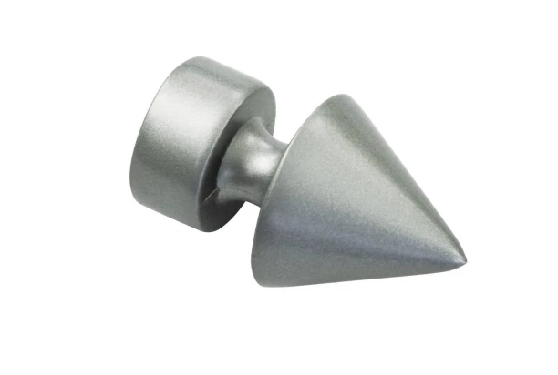 Matná kovová koncovka na garnýž ve tvaru kužele o průměru 1,9 cm.