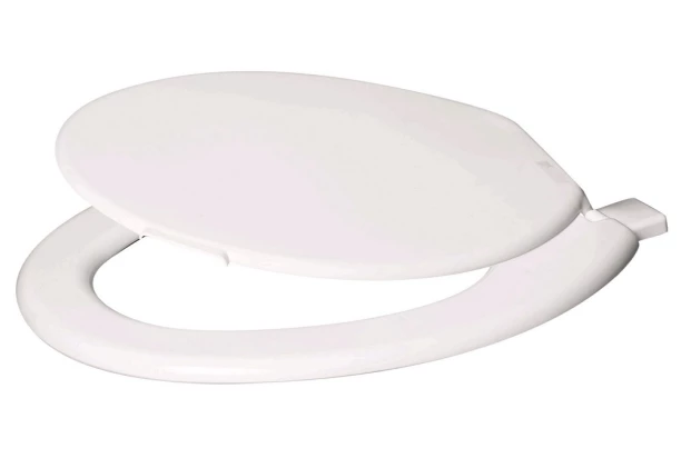 Jednoduché WC prkénko na toaletu je vyrobeno z bílého plastu a univerzálně se hodí téměř na každou záchodovou mísu.
