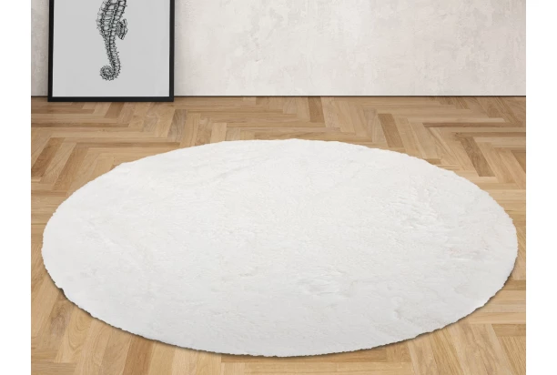 Moderní chundelatý koberec v bílé barvě má vzhled králičí kožešiny a je příjemný nejen na pohled, ale také na dotek. Mazlivý plyšový koberec si zamilujete pro jeho hebkost a jemnost, který navíc krásně doplní a doladí Váš domov. Kulatý koberec o průměru 60 cm si také oblíbí děti ve svém pokoji.