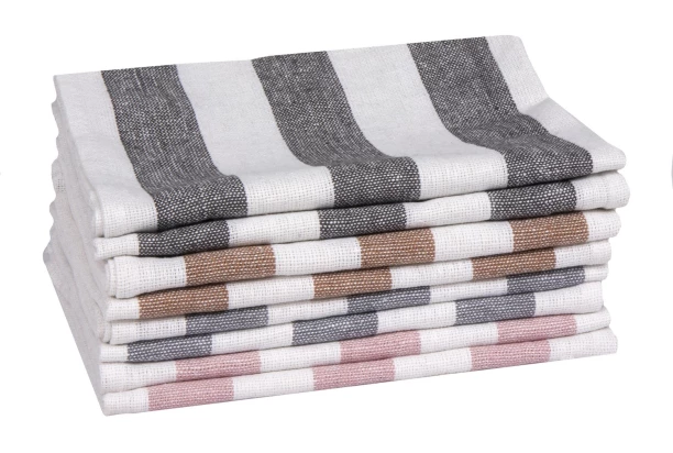 Sada obsahuje 8 kusů kuchyňských bavlněných utěrek s hnědými pruhy. Praktické v každé kuchyni, nezbytné pro utírání nádobí.
