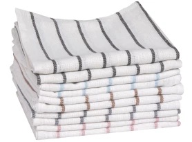 Sada obsahuje 8 kusů kuchyňských bavlněných utěrek s růžovými pruhy. Praktické v každé kuchyni, nezbytné pro utírání nádobí.