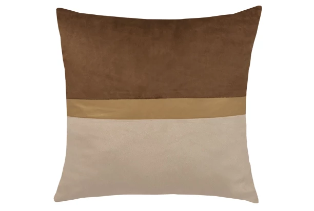 Sametový dekorační polštář v elegantní hnědé barvě s ozdobným pruhem uprostřed se stane parádním bytovým doplňkem. Rozměr 45×45 cm.