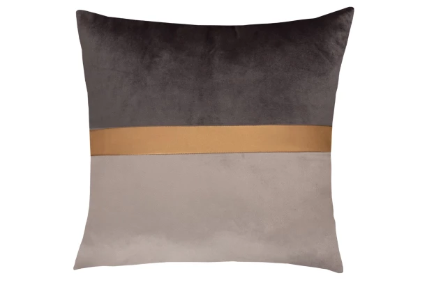 Sametový dekorační polštář v elegantní šedé barvě s ozdobným pruhem uprostřed se stane parádním bytovým doplňkem. Rozměr 45×45 cm.