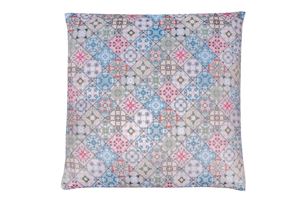 Dekorační barevný polštář o rozměru 45×45 cm se stane skutečným poutačem. Fascinující vzor v podobě orientálních květinových mandal si zamilujete.