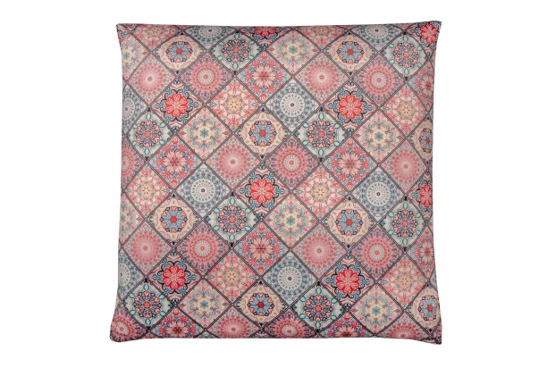 Dekorační vícebarevný polštář o rozměru 45×45 cm se stane skutečným poutačem. Fascinující vzor v podobě orientálních květinových mandal si zamilujete.