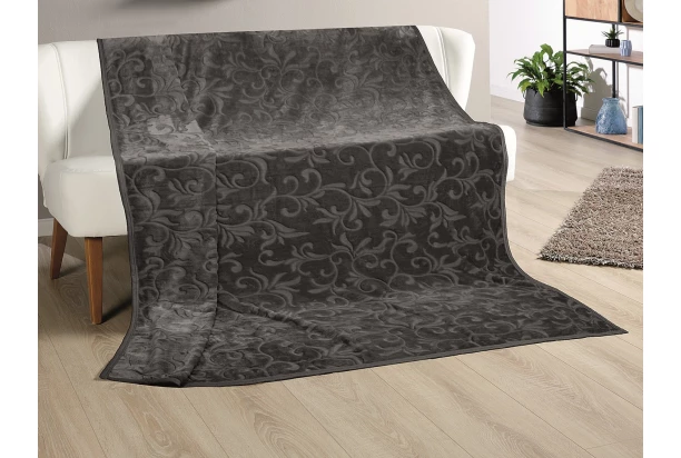 Příjemná flanelová deka XXL v antracitové barvě s motivem ornamentů Vás potěší během relaxování u televize nebo u knížky. Ideální také jako přikrývka na spaní nebo jako dekorační přehoz. Rozměr 180×220 cm.