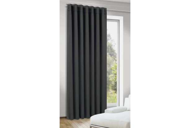 Zatemňovací závěs se skrytými poutky v antracitové barvě perfektně zastíní pronikající světlo, poskytne soukromí a vytvoří útulnou atmosféru. Rozměr 140×245 cm.