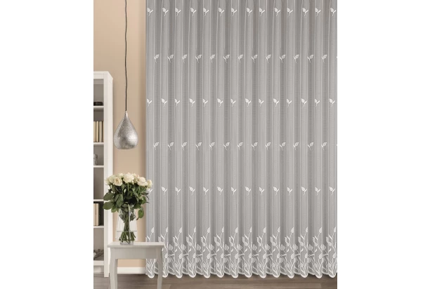 Jemná žakárová záclona s elegantním vzorem bílých lístečků zakončená do oblouků. Záclona o rozměru 300×245 cm se stane krásnou okenní dekorací, která navíc poskytne dostatečné soukromí a ochranu před přímými slunečními paprsky.