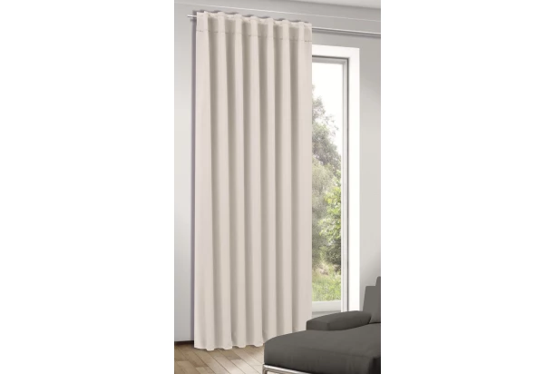 Zatemňovací závěs se skrytými poutky v krémové barvě perfektně zastíní pronikající světlo, poskytne soukromí a vytvoří útulnou atmosféru. Rozměr 140×245 cm.