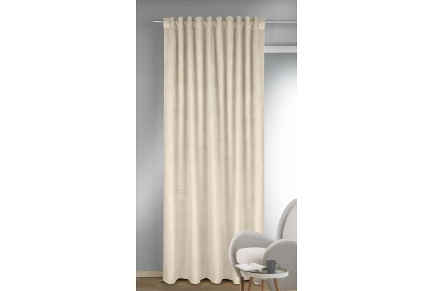 Zatemňovací závěs v sametově hladkém vzhledu v jednobarevném krémově bílém provedení působí luxusním a elegantním dojmem. Závěs perfektně zastíní pronikající světlo, poskytne soukromí a vytvoří útulnou atmosféru. Rozměr 135×245 cm.