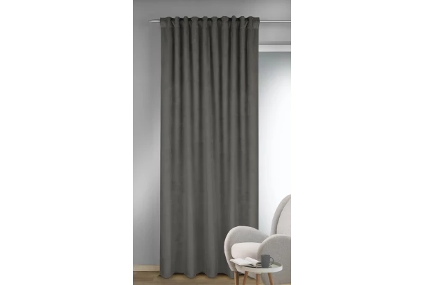 Zatemňovací závěs v sametově hladkém vzhledu v jednobarevném šedém provedení působí luxusním a elegantním dojmem. Závěs perfektně zastíní pronikající světlo, poskytne soukromí a vytvoří útulnou atmosféru. Rozměr 135×245 cm.