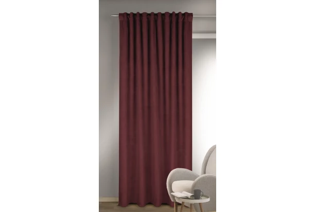 Zatemňovací závěs v sametově hladkém vzhledu v jednobarevném bordó provedení působí luxusním a elegantním dojmem. Závěs perfektně zastíní pronikající světlo, poskytne soukromí a vytvoří útulnou atmosféru. Rozměr 135×245 cm.