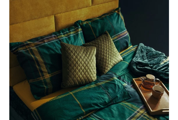 Krásné povlečení z hřejivé a nadýchané bavlny Biber s moderním károvaným vzorem v zeleném provedení je jako stvořené pro chladné zimní dny. Díky neutrálnímu vzoru a jemným barvám se povlečení hodí téměř do každého interiéru.