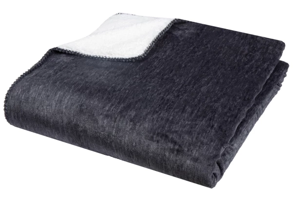 Měkoučká deka v antracitové barvě s bílým beránkem Vás příjemně zahřeje během chladných večerů. Rozměr 150×200 cm.