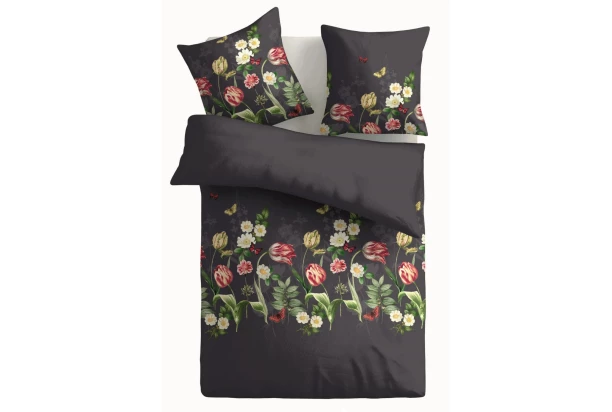Bavlněné ložní povlečení v černé barvě s elegantním motivem květinové zahrady se hodí do každé ložnice a poskytne pohodlný spánek.