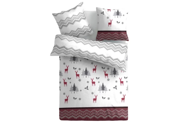 Ložní povlečení s vánočním motivem sobů a stromků je vyrobeno z bavlny renforcé, která je špičkou v bavlněném textilu. Je jemnější, hebčí a příjemnější na dotek, navíc má zvýšené absorpční vlastnosti, odvádí vlhkost, je odolnější vůči otěru a má delší živostnost. Toto povlečení v šedo-bílém provedení s červenými prvky krásně doladí vánoční atmosféru.