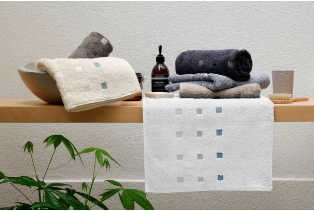 Froté ručník Quattro, tencel, bílý, kostičky, 50x100 cm