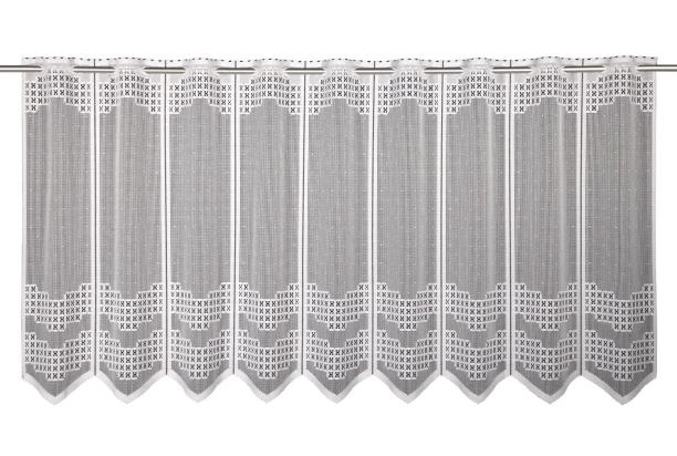 Bílá žakárová vitrážová záclona s decentním grafickým vzorem bude perlou ve Vašich oknech. Bistro záclonka o rozměru 140×60 cm okouzlí svým vzhledem, oživí každou kuchyni, poskytne dostatečné soukromí a ochrání před slunečními paprsky.