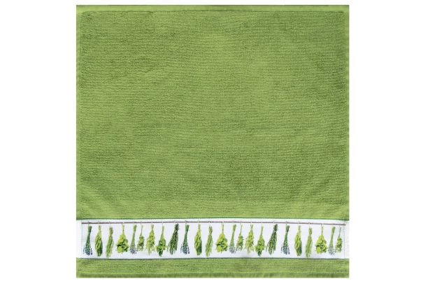 Froté kuchyňská utěrka 50x50 cm, byliny, mechově zelená